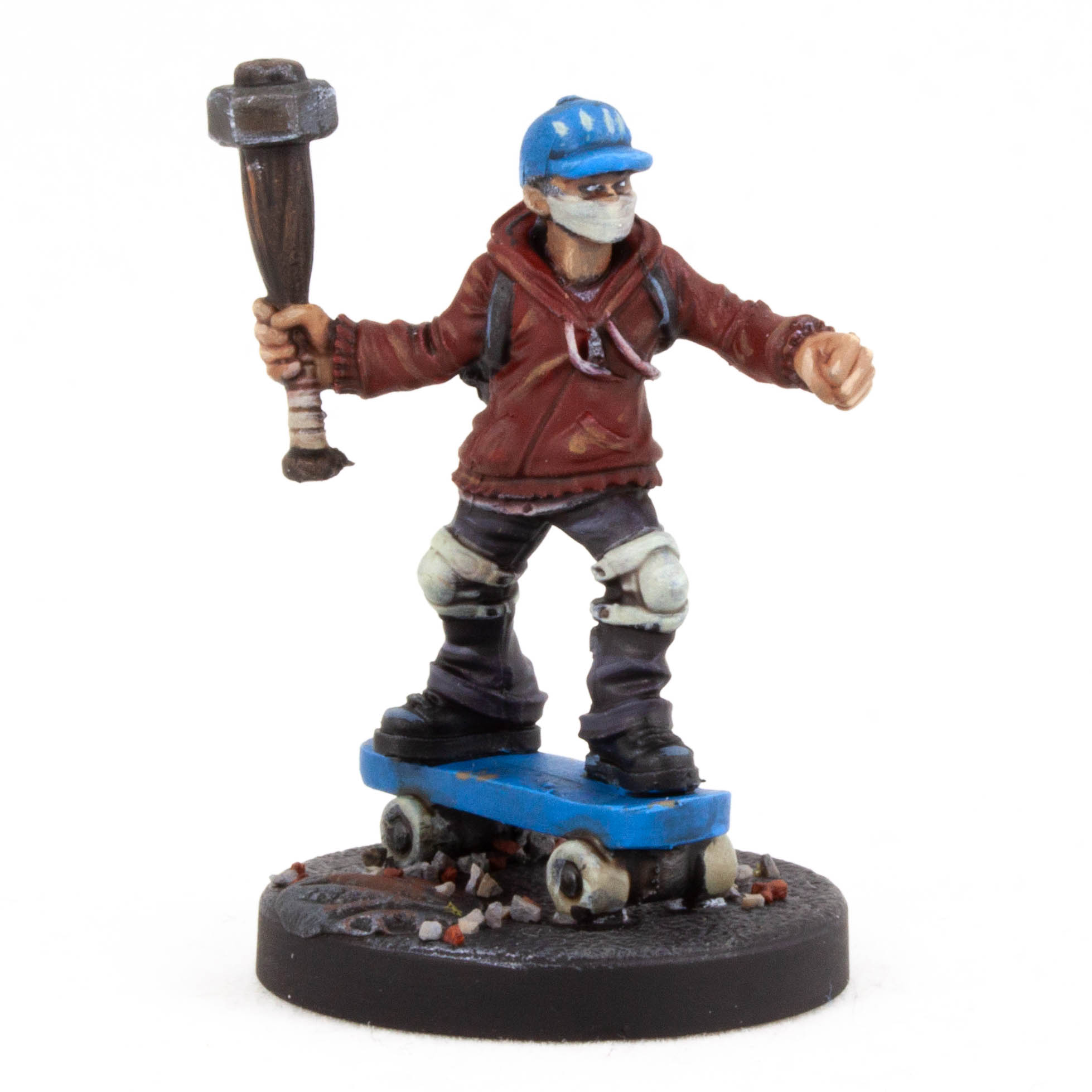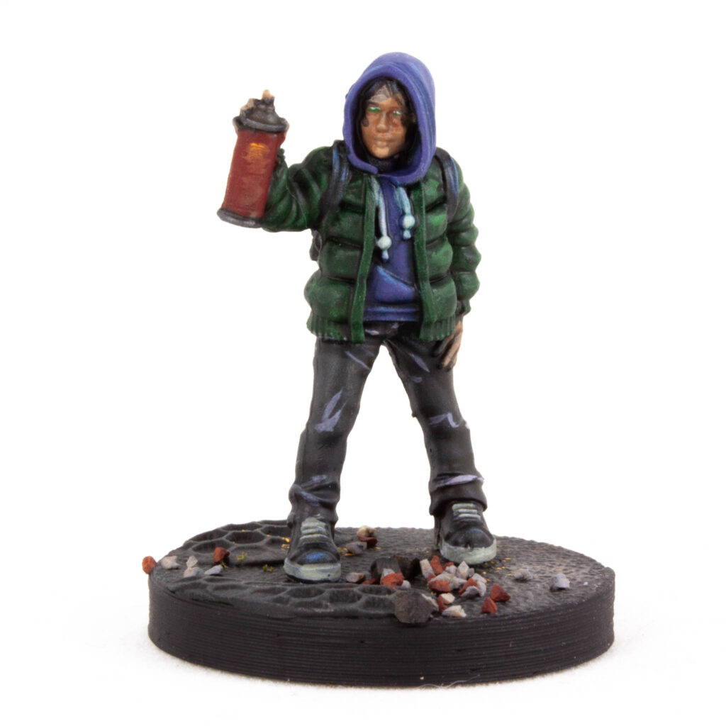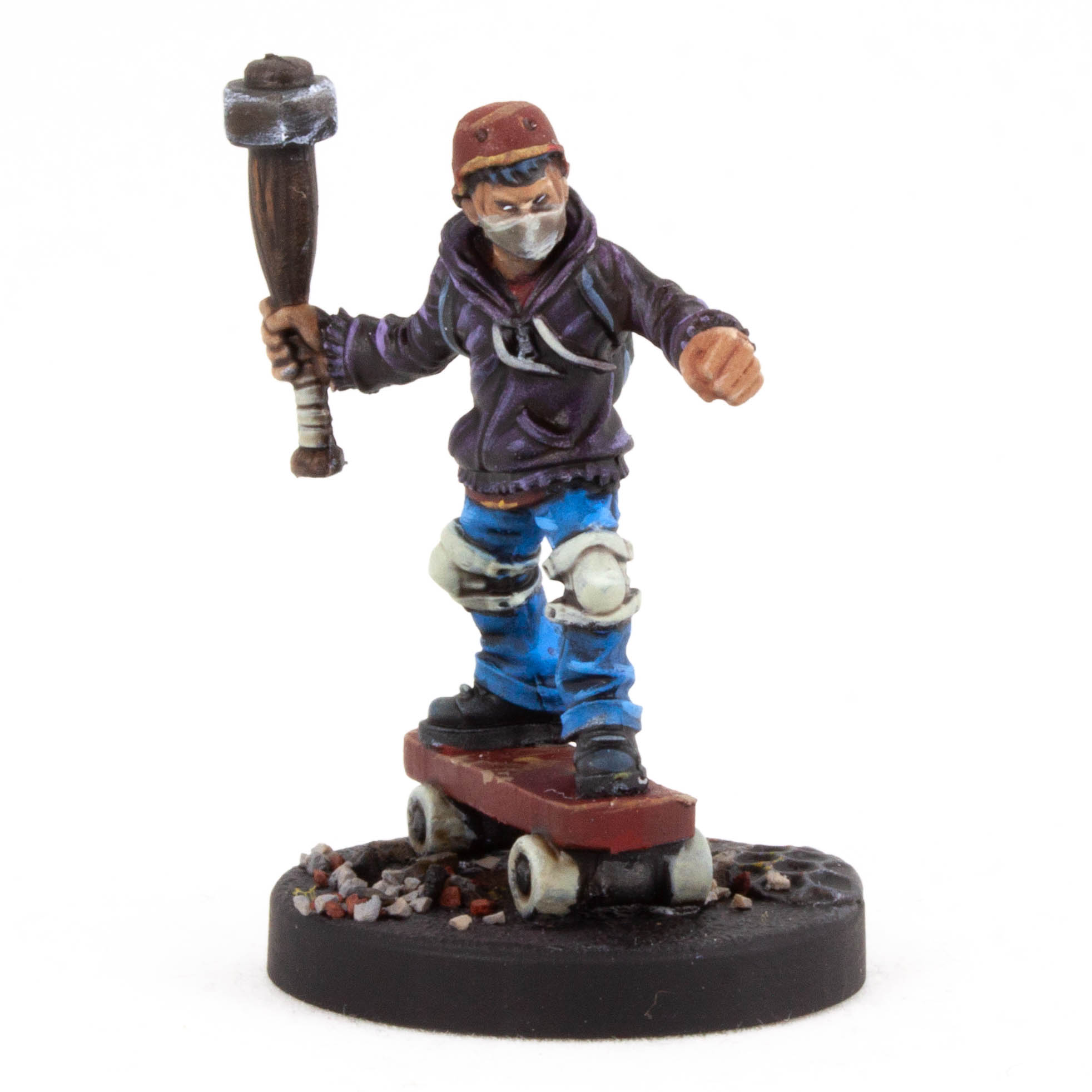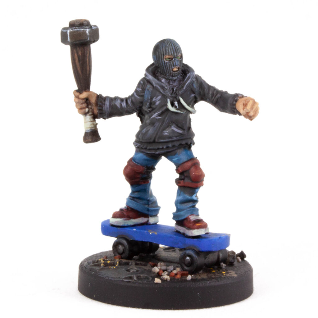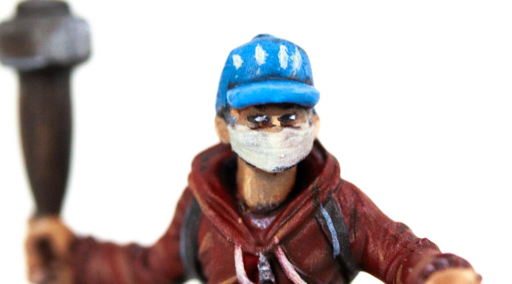 This head had a bubble in the casting. I decided to lean into it, carving it out and painting it metal. Some head injury that got a cyber repair.