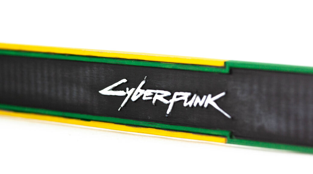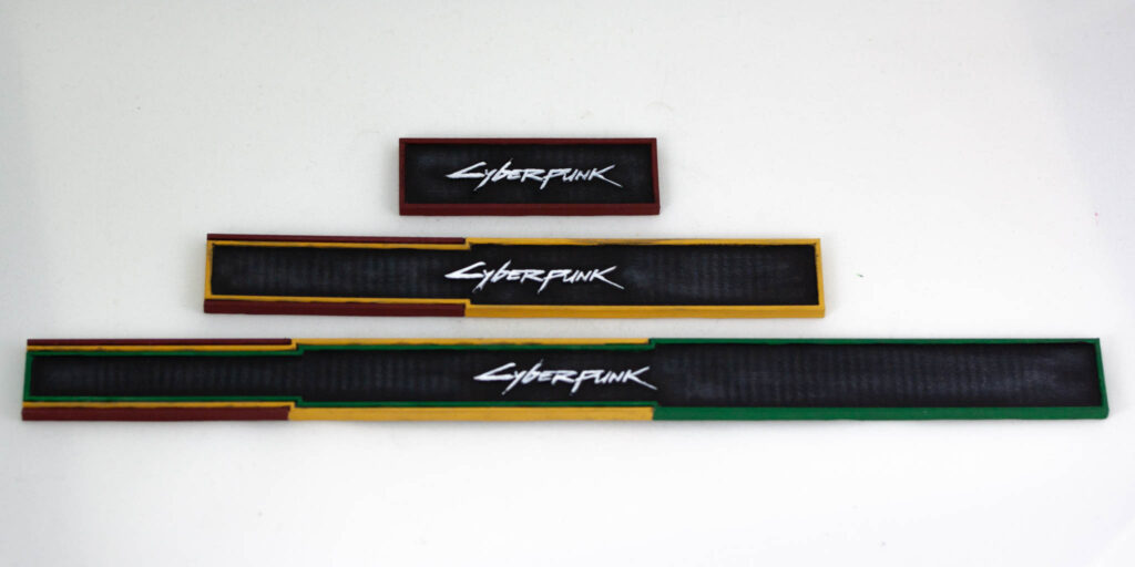 Cyberpunk Combat Zone, like many modern skirmish games, uses a measurement widget for ranges instead of a standard tape measure. The official one is 12″ piece of flexible plastic, with red, yellow, and green range bands marked.